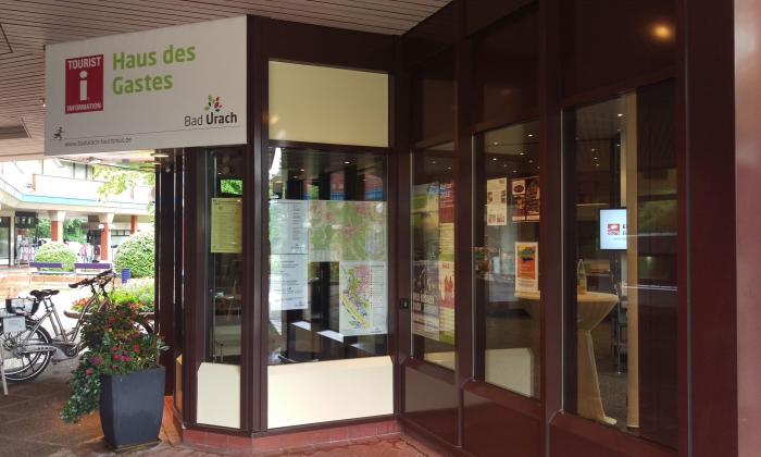 Im Haus des Gastes stehen Sie im Mittelpunkt. In der Tourist-Information der Kurverwaltung erhalten Sie Broschüren und Informationen rund um Bad Urach und die Schwäbische Alb. Im Lesebereich in der Glashalle, können Sie sich in Ruhe über das Weltgeschehen in den unterschiedlichsten Tageszeitungen, die wir tagesaktuell für Sie auslegen, informieren. Für Gäste mit Gästekarte bieten wir einen kostenlosen WLAN-Zugang für Notebook, Tablet PC oder Smartphone an.